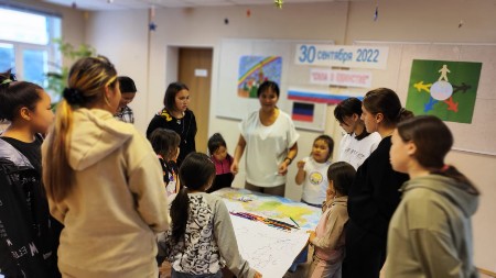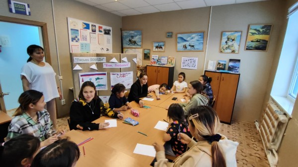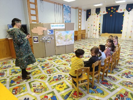 В кружке «Город мастеров» в рамках воспитательной работы педагог дополнительного образования Медведкова Н.Д. провела мероприятие «Любимый край-Чукотка». В процессе мероприяття она рассказала о том, как сохраняются национальной культуры малочисленных народов Крайнего Севера. Ребята с удовольствием прослушали беседу о жизни и быте чукчей и эскимосов - коренных жителей Чукотки. Дети с интересом разгадывали загадки о животном мире края, поиграли в подвижные игры под национальные песни в исполнении государственного ансамбля «Эргырон». В конце мероприятия ребята раскрашивали фигурки северных животных, птиц и приклеивали их на подготовленный плакат.